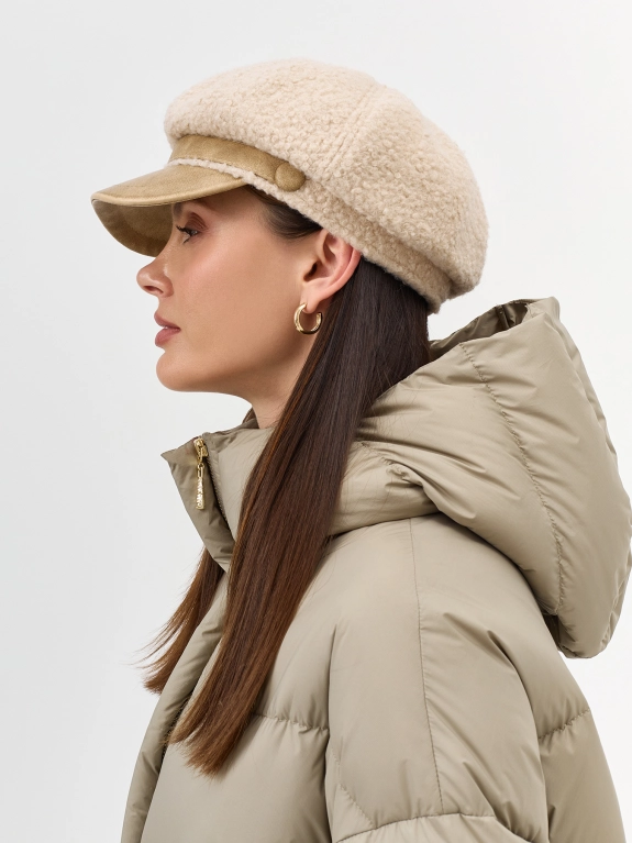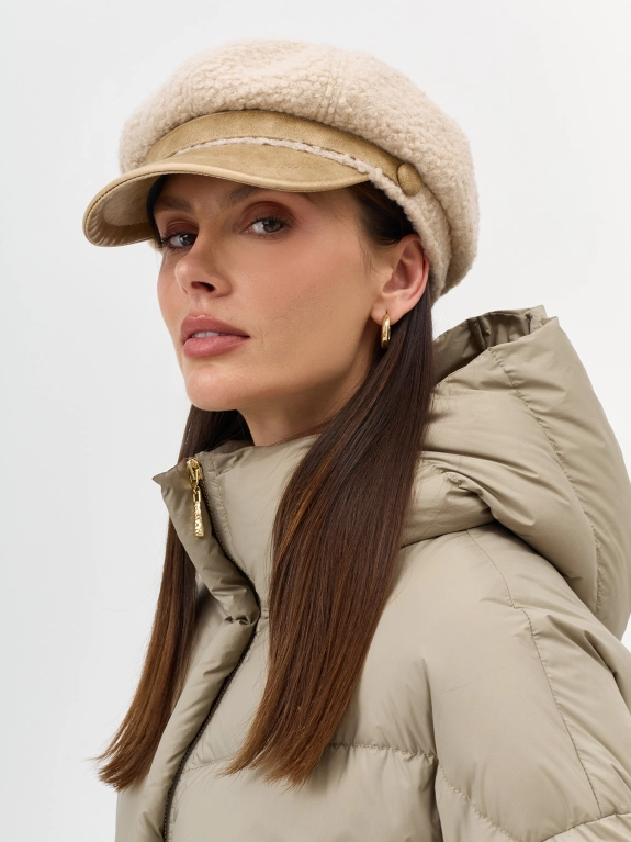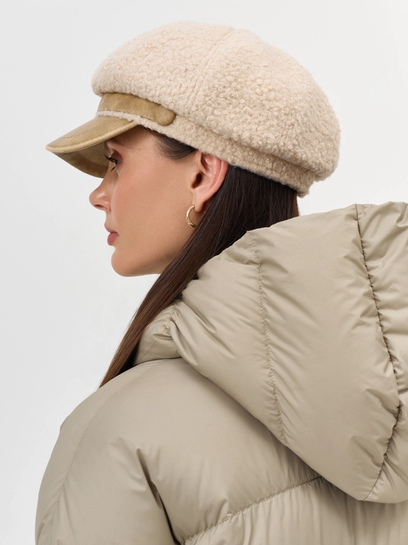 Меховая кепи. Широкий изогнутый козырек. Дополнена рибом по внутренней стороне для лучшей фиксации и регулировки размера.