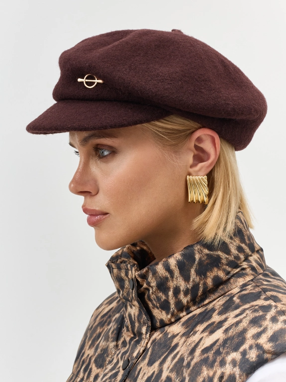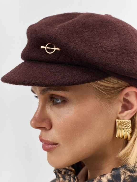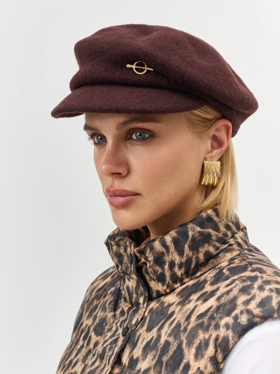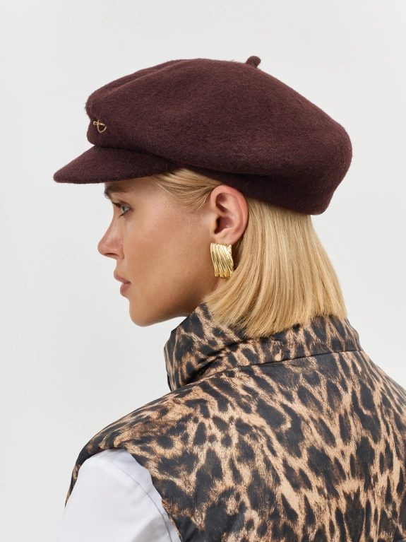 Шерстяное кепи с минималистичным декором. Широкий изогнутый козырек. Риб по внутренней стороне для лучшей фиксации и регулировки размера.