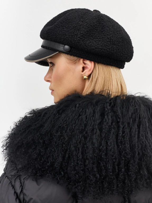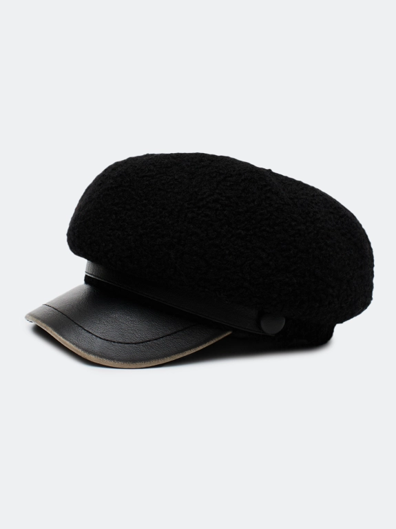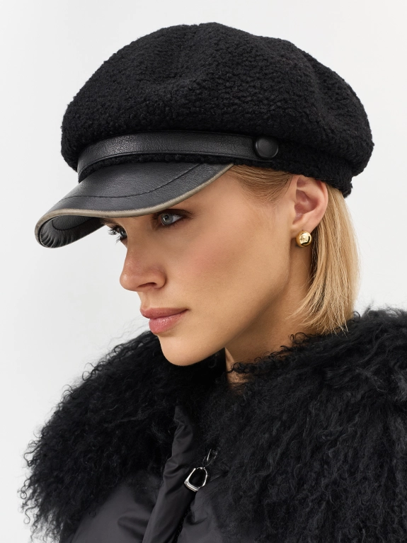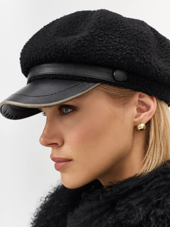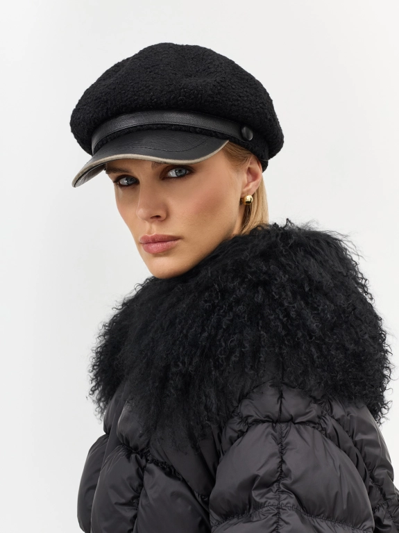 Меховая кепи. Широкий изогнутый козырек. Дополнена рибом по внутренней стороне для лучшей фиксации и регулировки размера.