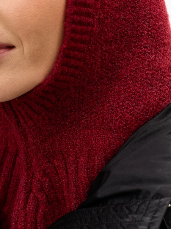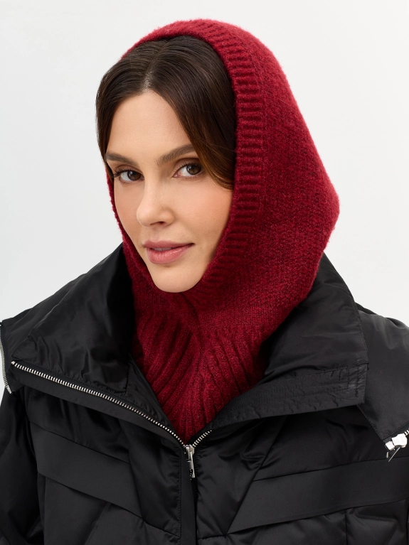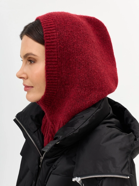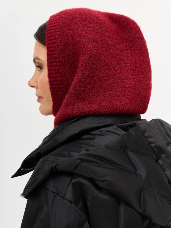 Мягкий капор с шерстью в составе. Широкий риб по низу изделия. Узкий риб вокруг выреза.