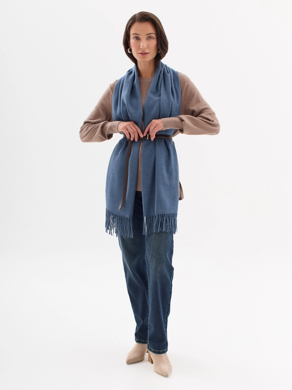 Мягкий длинный палантин с бахромой и шерстью в составе.