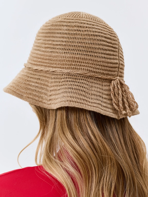 Пляжная плетеная шляпа из 100% льна. Классическая плетеная панама в морском стиле. Закругленная тулья и короткие опущенные поля. Регулировка размера с помощью внутренней кулисы.