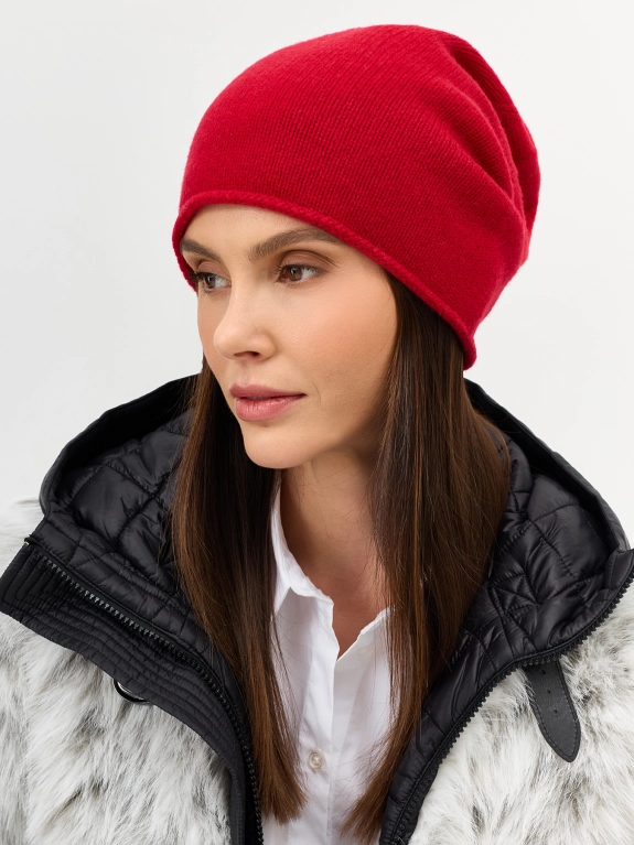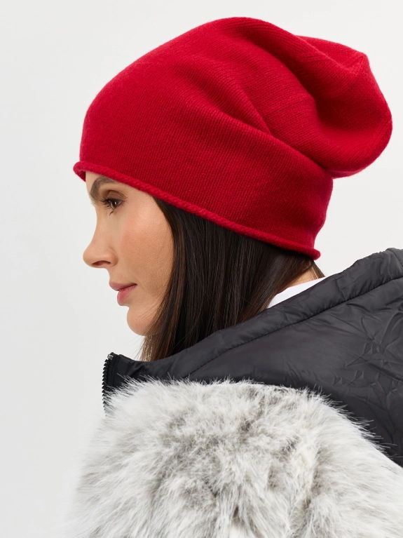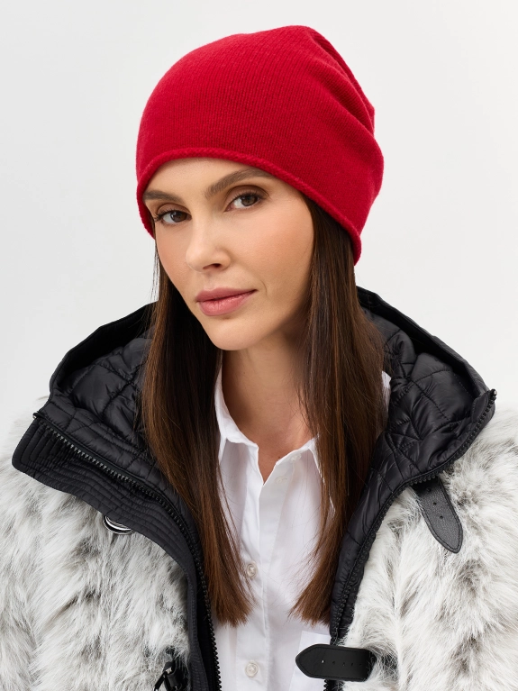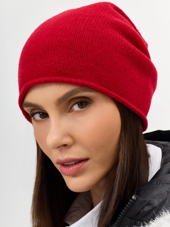 Базовая шапка из 100% шерсти. Гладкая вязка с закручивающимся краем.