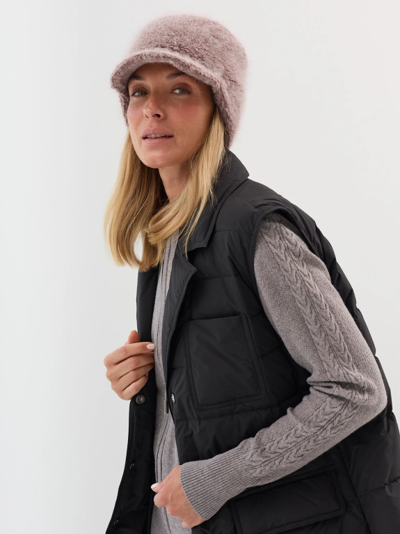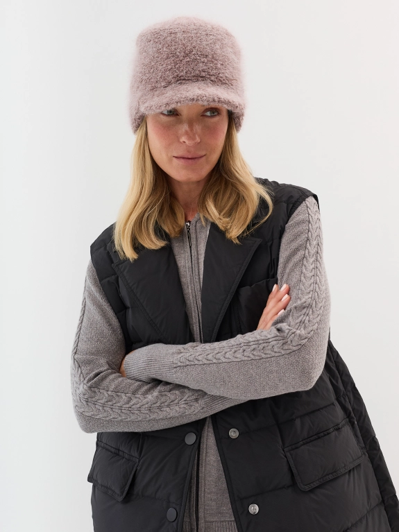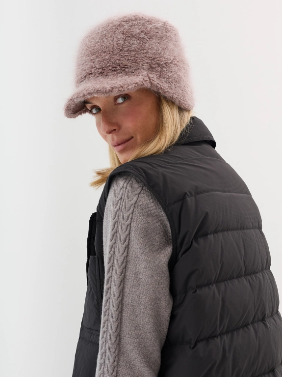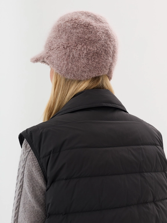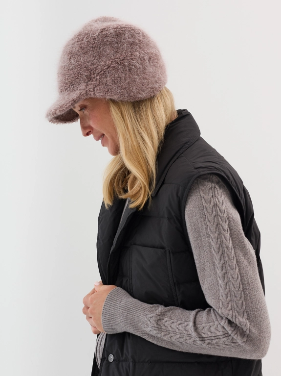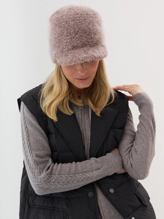 Шапка с козырьком из мягкой пряжи "Teddy". Всоставе ангора и вискоза. Акцентная деталь над козырьком.