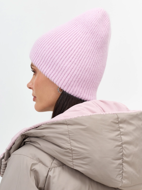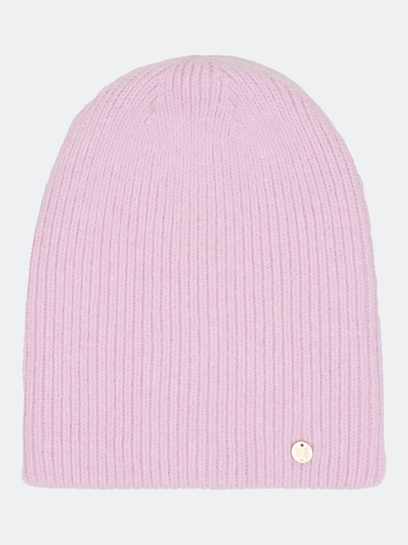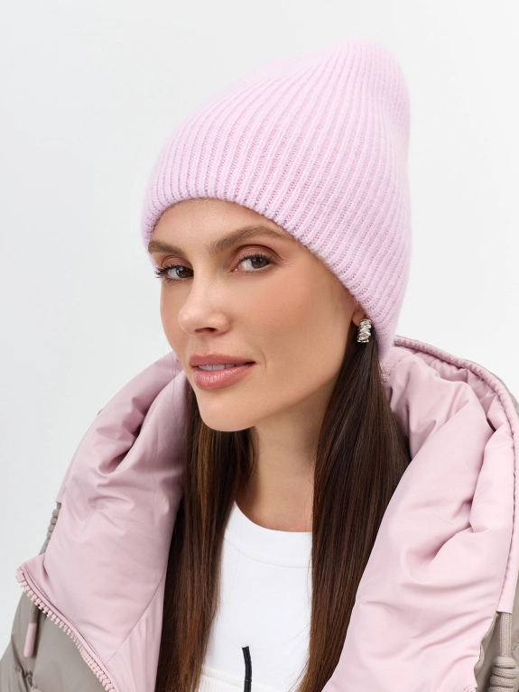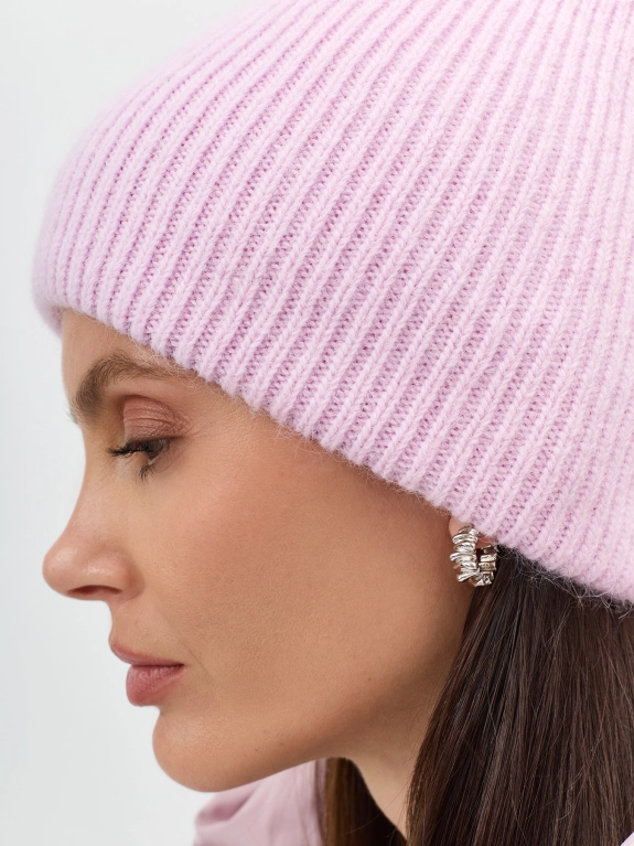 Шапка в тонкий рубчик с минималистичным декором. Двойная вязка. В составе ангора.