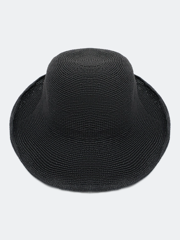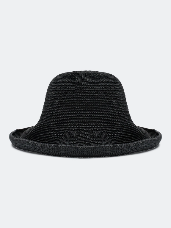 Шляпа-котелок из натуральной бумажной соломки. Плетеная шляпа с округлой тульей и широкими полями с каркасом, благодаря которому можно менять их форму. Регулировка размера с помощью внутренней кулисы.