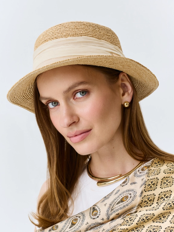 Шляпа-канотье с декоративной лентой