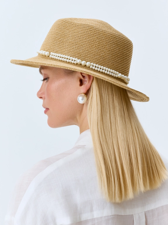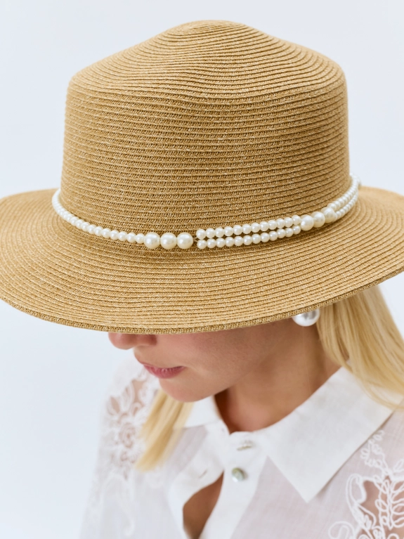 Шляпа-канотье с жемчужинами
