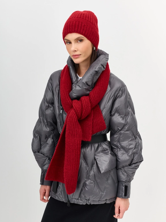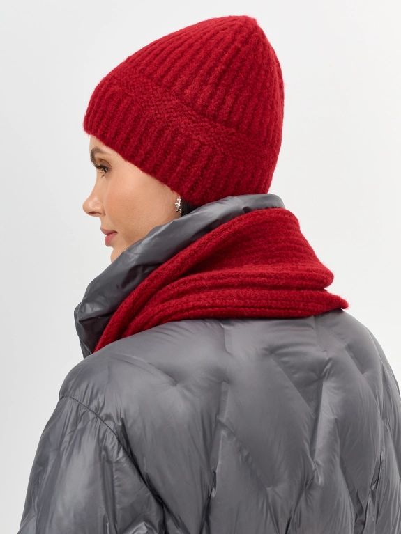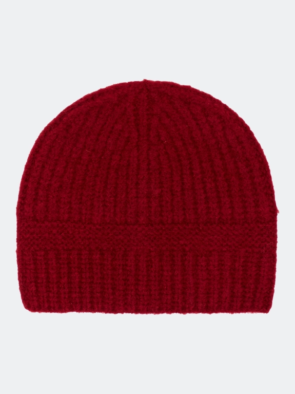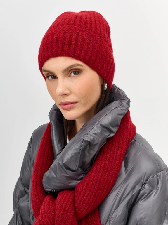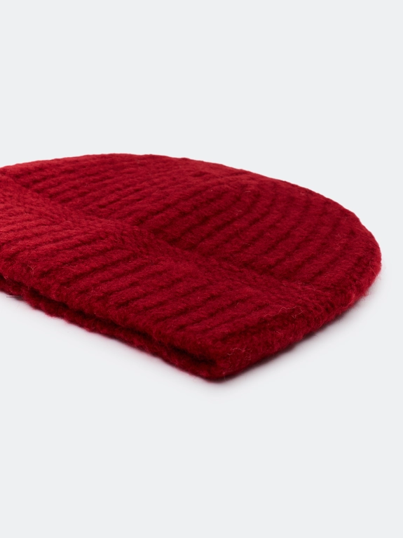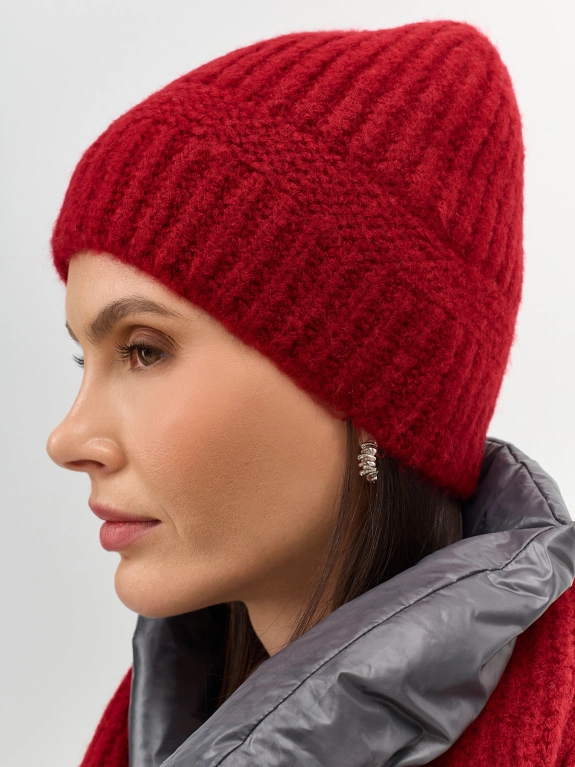 Теплая шапка свободного объёма с шерстью в составе. Дополнена отделкой в рубчик.