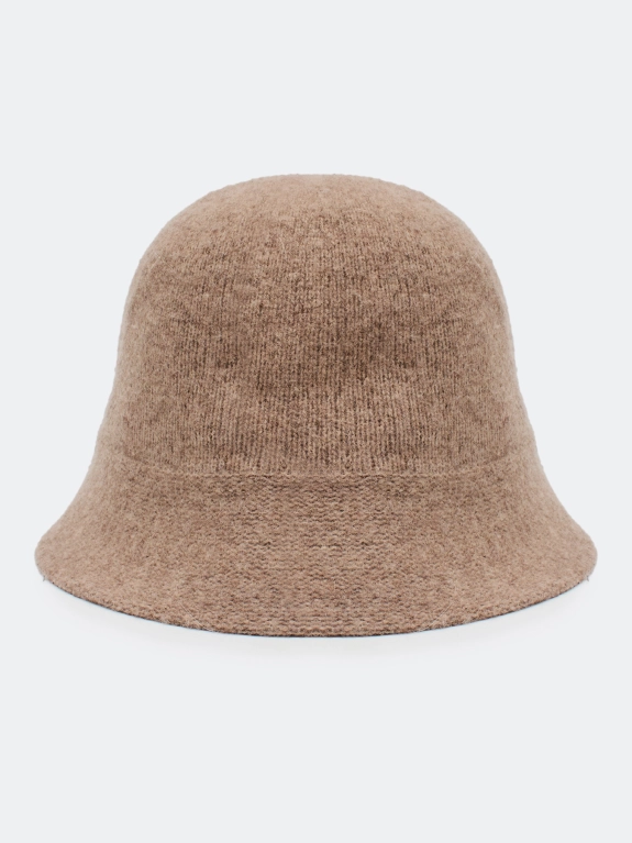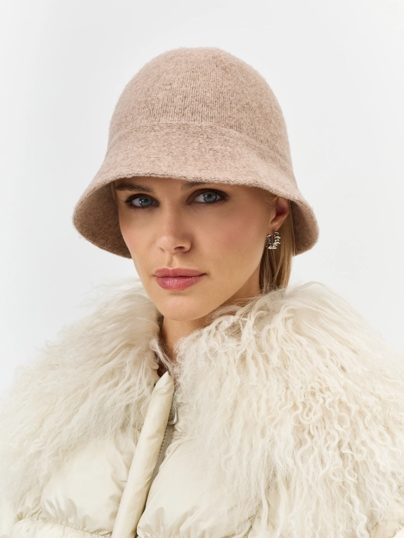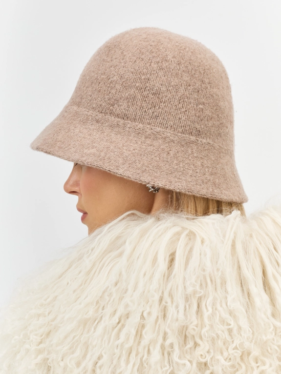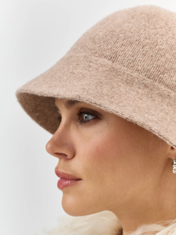Вязаная шляпа с узкими полями из шерстяной пряжи. Риб по внутренней стороне изделия для лучшей фиксации и регулировки размера.