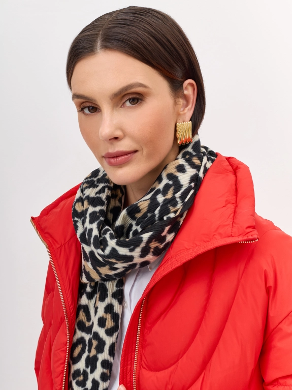 Мягкий шарф из жатого текстиля с анималистичным принтом и акцентной обработкой края. Прямоугольная форма, one size