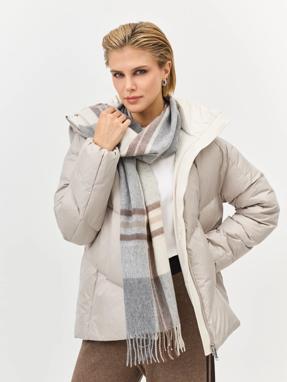 Шерстяной шарф в клетку с деликатной бахромой по краю. Прямоугольная форма, one size