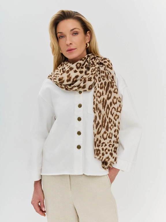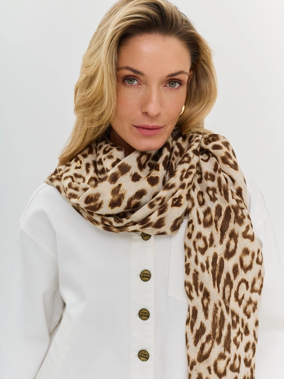 Тонкий воздушный палантин с анималистичным принтом.