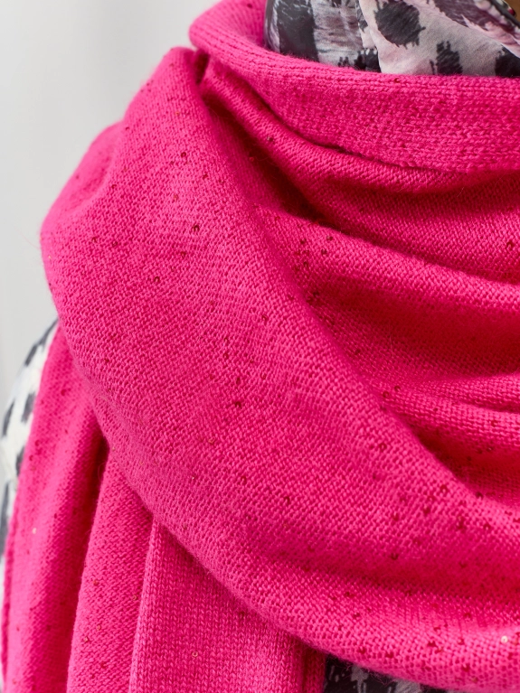 Вязаный шарф с деликатными пайетками и ангорой в составе пряжи. Прямоугольная форма, one size. Комплект с шапкой BLMR402582