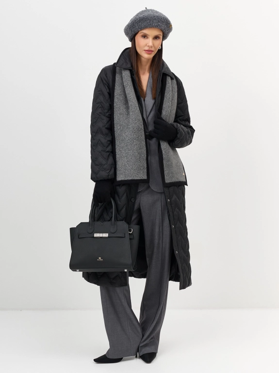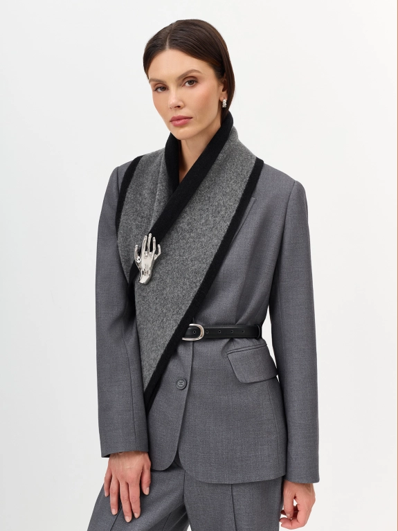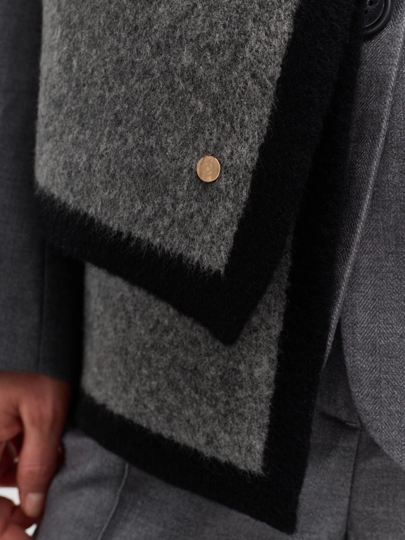 Вязаный двухцветный шарф из фасонной ворсистой пряжи с добавлением шерсти. Украшен металлическим шильдиком. Прямоугольная форма, one size