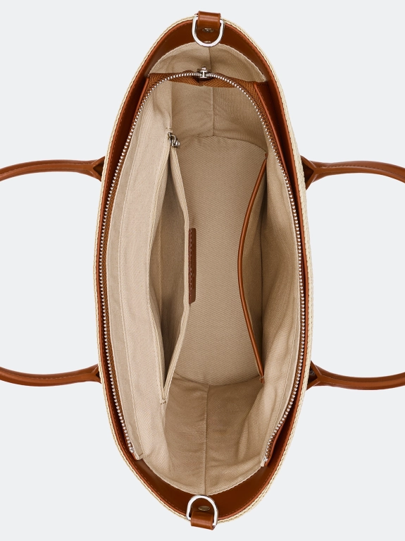 Соломенная сумка в контрастную полоску. Одно вместительное отделение. Застежка на молнию. Две короткие ручки и длинный регулируемый ремень в комплекте.
