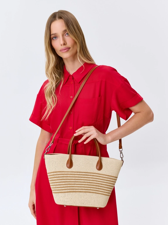 Соломенная сумка в полоску