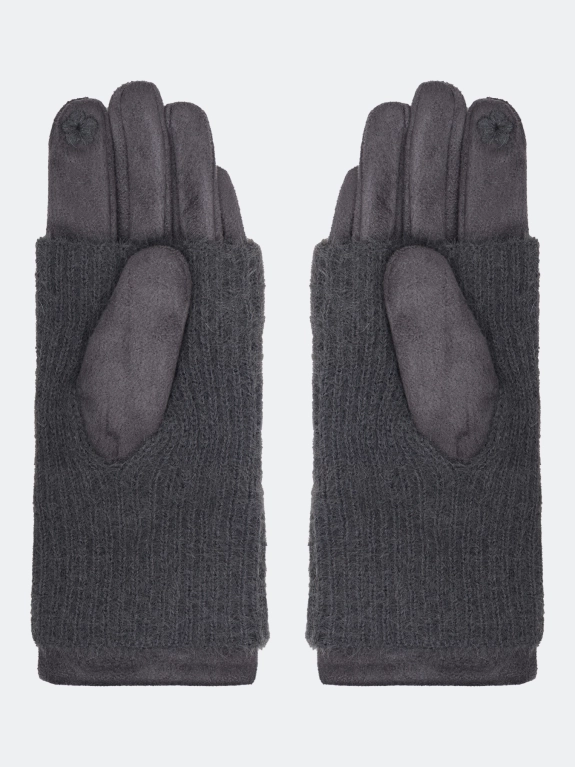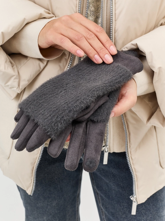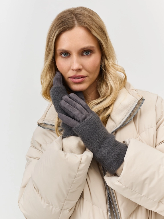 Перчатки из трикотажной замши с вязаными митенками в комплекте. Можно носить отдельно. Теплая текстильная подкладка. Используется технология iTouch, она создана специально для работы с сенсорными экранами. Благодаря этому не нужно снимать перчатки , чтобы ответить на звонок или написать сообщение.