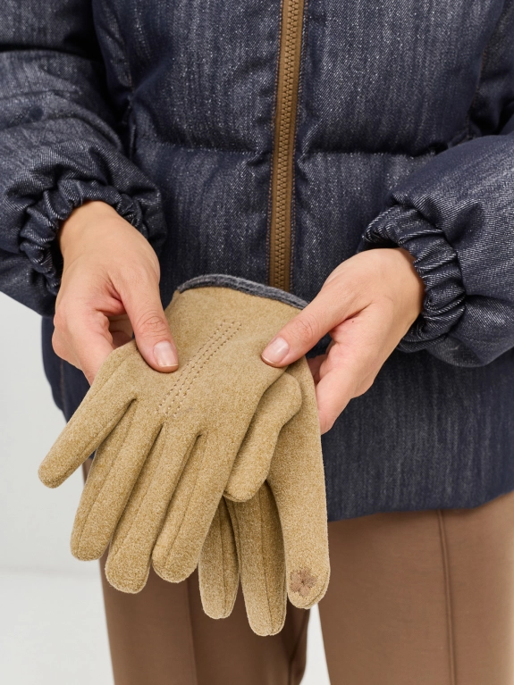 Трикотажные перчатки с деликатной вышивкой и патчем на запястье. Теплая текстильная подкладка. Используется технология iTouch, она создана специально для работы с сенсорными экранами. Благодаря этому не нужно снимать перчатки , чтобы ответить на звонок или написать сообщение.