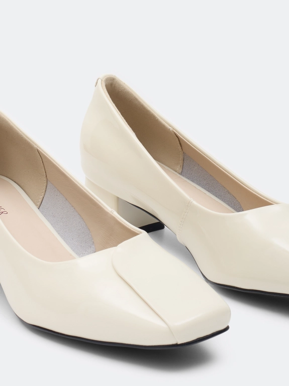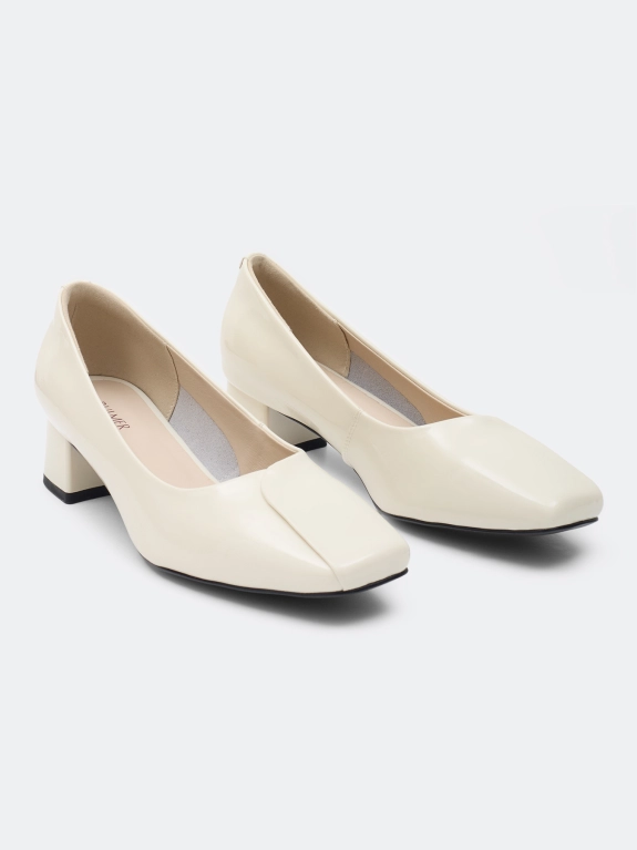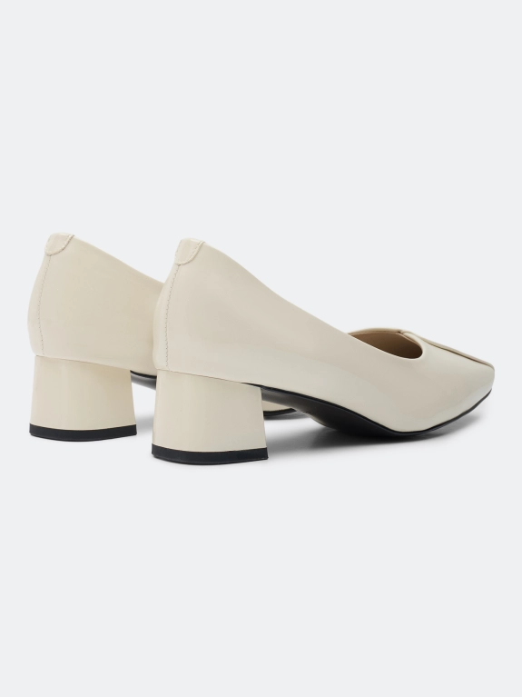Туфли из глянцевой натуральной кожи. Квадратный мыс. Средний устойчивый каблук. Подкладка и стелька из натуральной кожи. Подошва из резины.