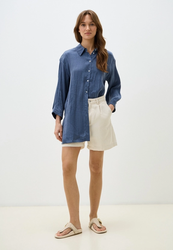 Удлиненная блузка-туника от немецкого бренда BULMER из шелковистого тенселя станет незаменимым элементом вашего летнего гардероба. Свободный силуэт и спущенная линия плеч обеспечивают комфорт и свободу движений, а отложной воротник и застежка на пуговицы придают модели стильный и утонченный вид.