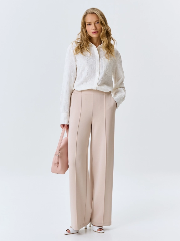 Брюки из мягкого модала с застроченными стрелками. Свободный силуэт. Резинка по линии талии по спинке. Боковые карманы в швах. Комплект с 4267881.