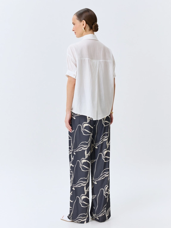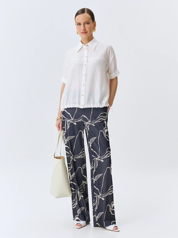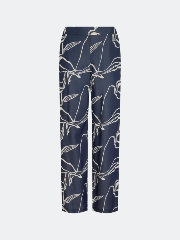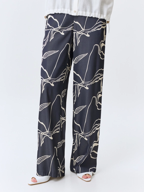 Брюки из смесового района с абстрактным принтом. Свободный силуэт. Резинка по линии талии по спинке. Боковые карманы в швах. Комплект с 4267356.