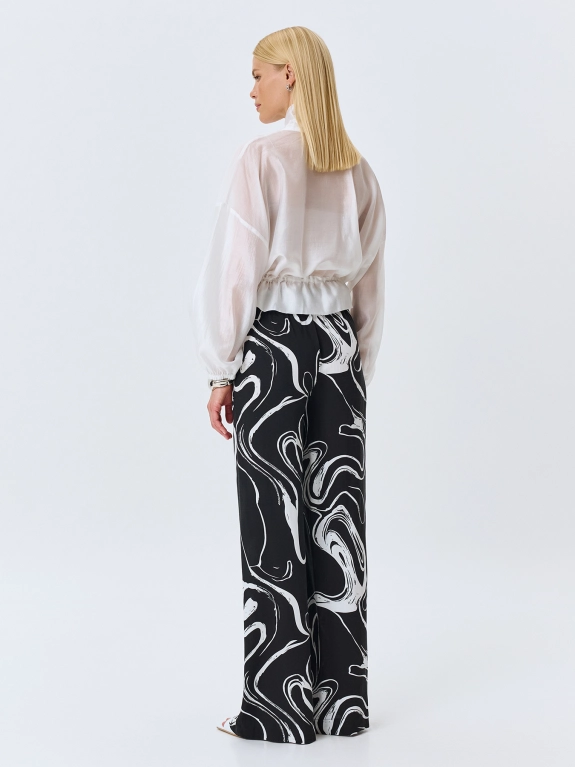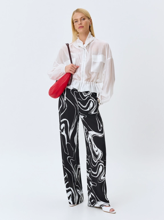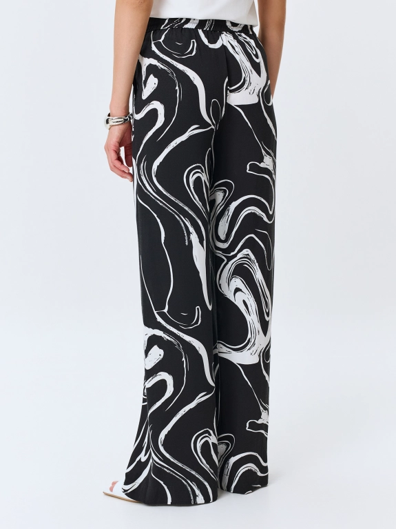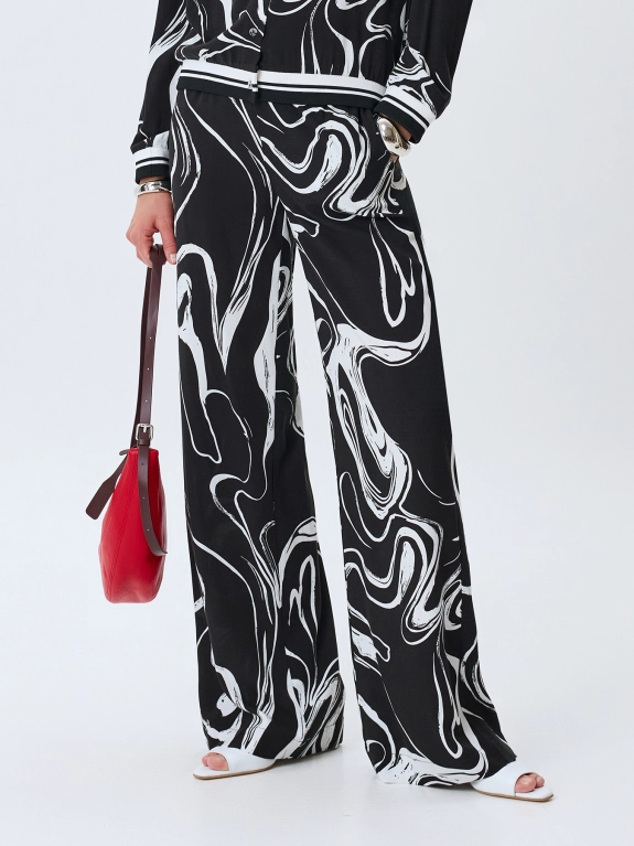 Брюки из 100% района с графичным принтом. Прямой силуэт. Резинка и кулиса по линии талии. Боковые карманы в швах. Комплект с 4267329.