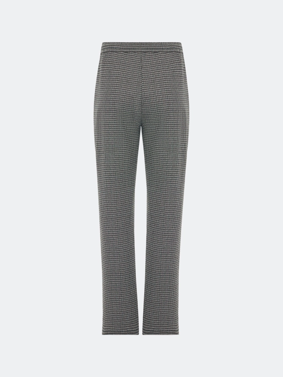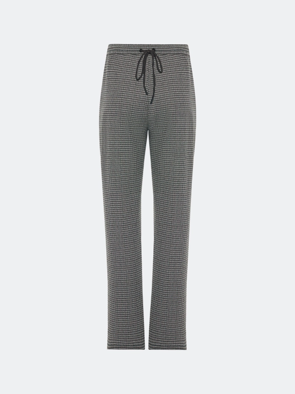 Расслабленные брюки из джерси в мелкую клетку из смесовой вискозы. Свободный силуэт немного заужен к низу. Резинка и шнурок по линии талии. Боковые карманы в швах. Комплект с арт. 5257812.
