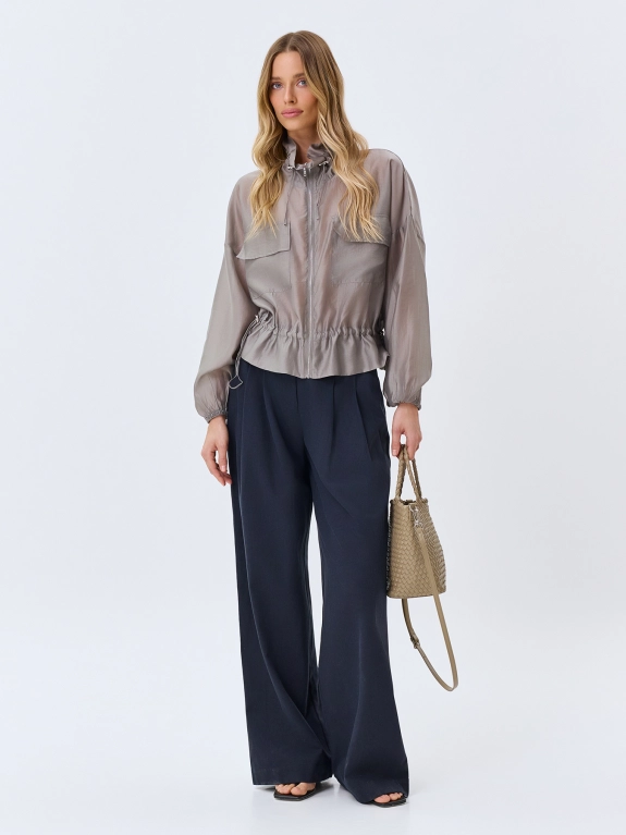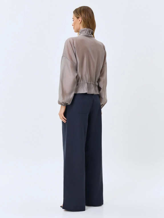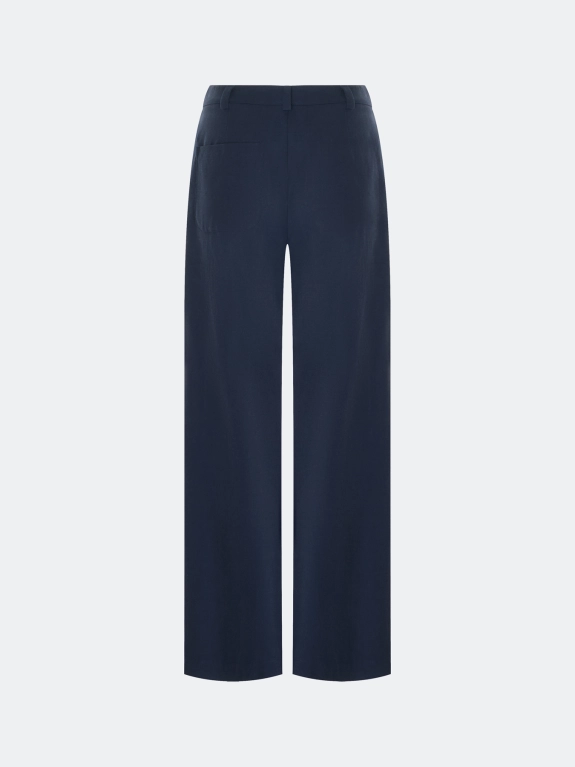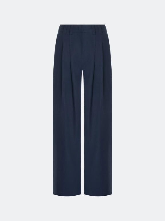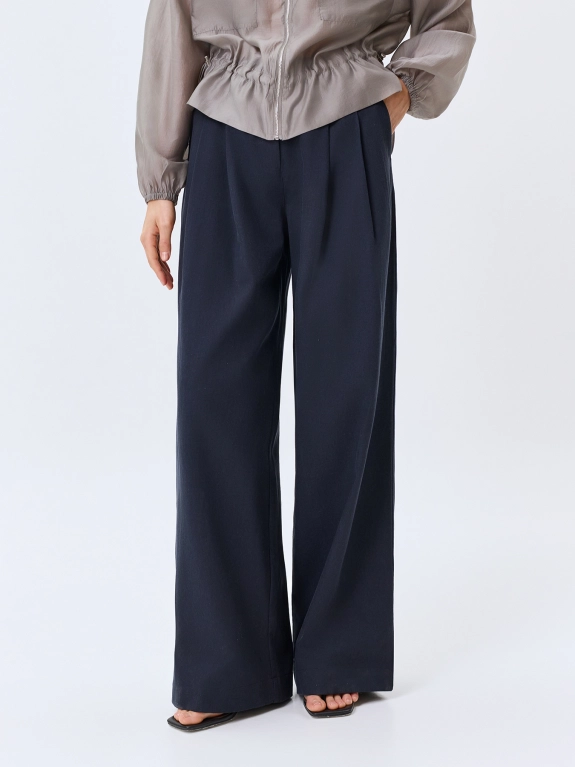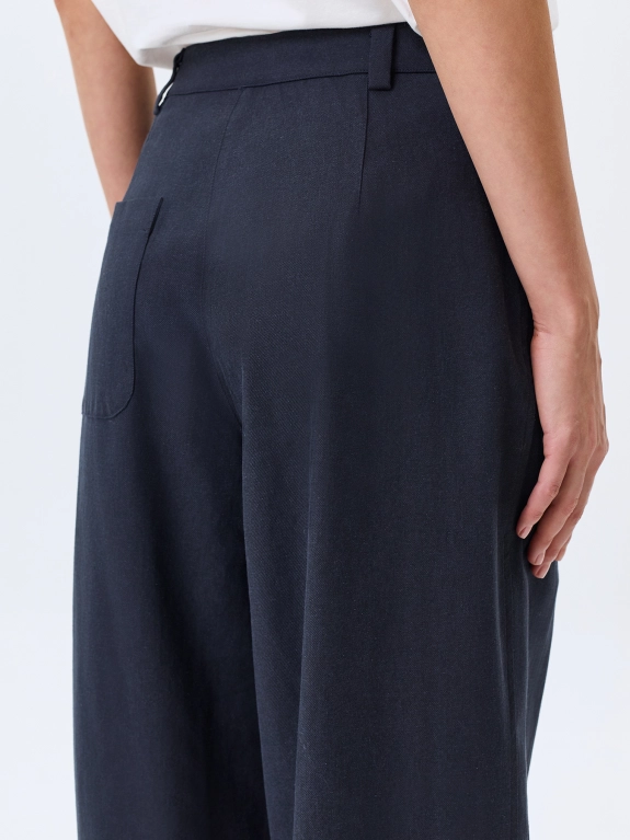 Широкие брюки из тенселя с добавлением льна. Свободный силуэт. Застежка на молнию и крючок. Боковые карманы в швах. Дополнены двойными складками.