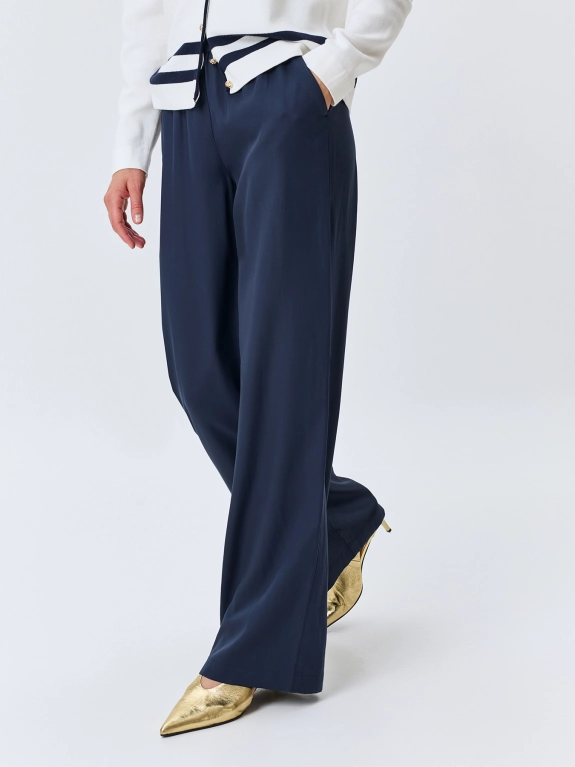 Свободные брюки из 100% тенселя. Прямой силуэт. Резинка и кулиса по линии талии. Боковые карманы в швах. Комплект с 4267312.