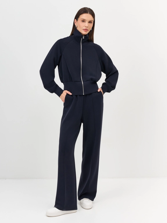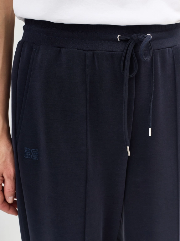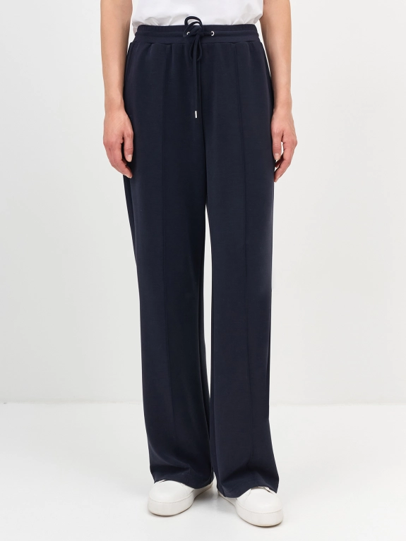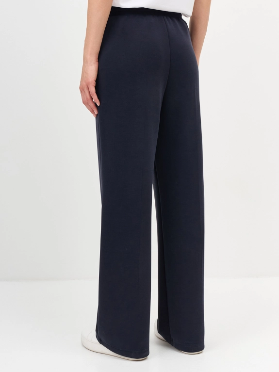 Прямые трикотажные брюки с застроченными стрелками. Резинка и шнурок по линии талии. Боковые карманы в швах. В составе модал. Комплект с арт. 5257829.