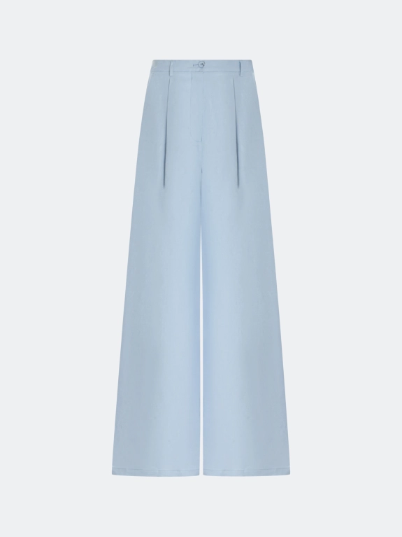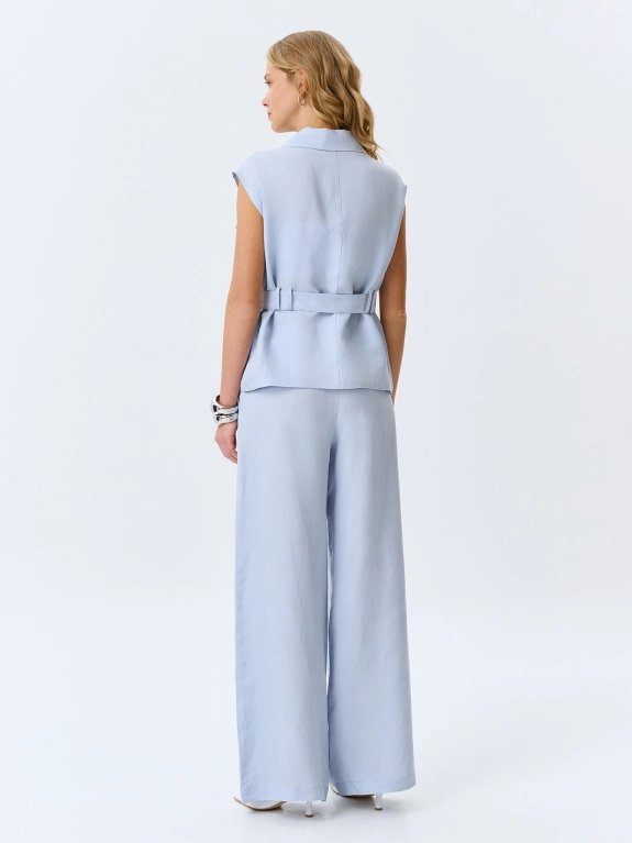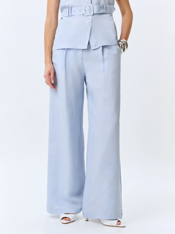 Яркие брюки из смесового льна и района. Свободный силуэт. Застежка на молнию и пуговицу. Резинка по линии талии по спинке. Боковые карманы в швах. Дополнены мягкими складками. Комплект с 4267369.