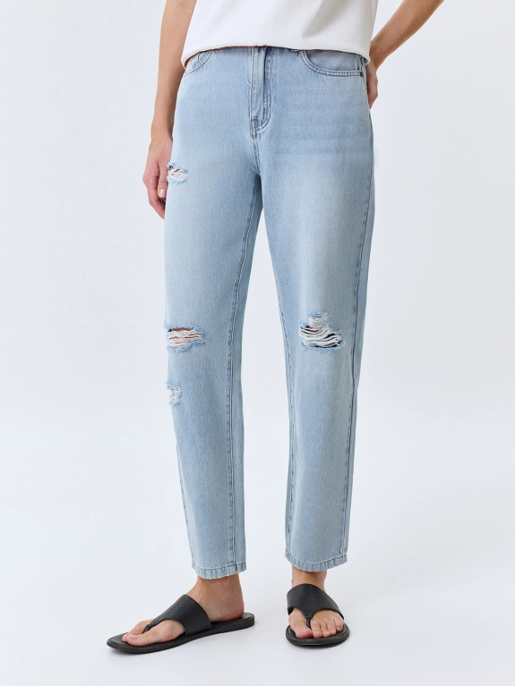 Джинсы бананы с акцентными дестроями