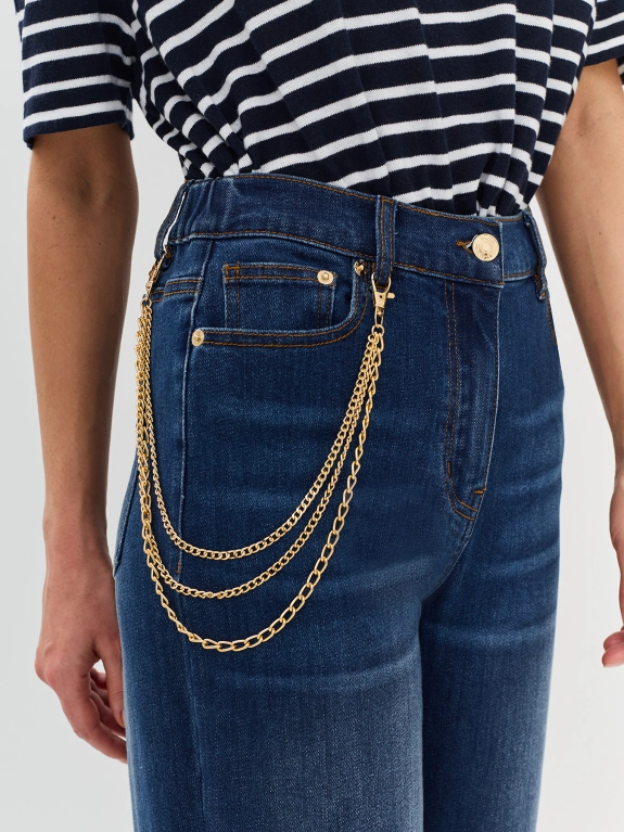 Прямой силуэт джинсов подчеркивает фигуру, а резинка на талии гарантирует удобную посадку. Акцентная съемная цепь добавляет образу смелость и индивидуальность. Джинсы BULMER станут базовой вещью в гардеробе любой женщины и девушки, позволяя создавать модные и стильные луки на любой случай, будь то весна или лето.