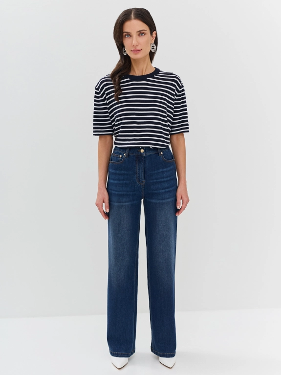 Джинсы прямые классические от немецкого бренда BULMER – это стильное и универсальное решение для создания как повседневных, так и вечерних образов. Модель выполнена из плотного денима с добавлением хлопка, полиэстера, вискозы и спандекса, что обеспечивает комфорт и свободу движений.