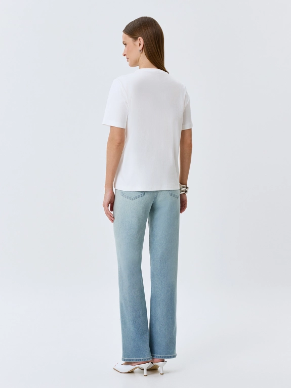 Джинсы Straight fit с градиентной варкой. Прямой силуэт. Застежка на молнию и металлическую пуговицу. Пять карманов. Деликатная вышивка на задних карманах. В составе спандекс.