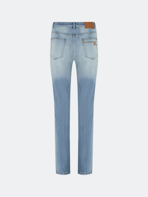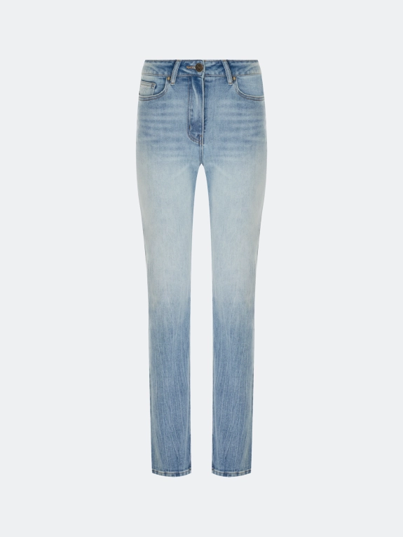 Джинсы Straight fit с мраморной акцентной варкой и крэш эффектом по низу. Классическая застежка на молнию и металлическую пуговицу. Пять карманов. Деликатная авторская вышивка на заднем кармане. В составе модал.