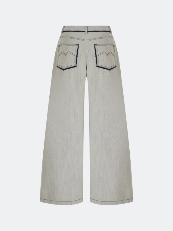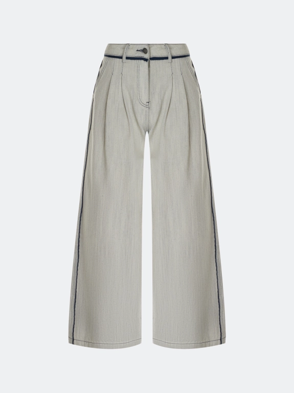 Меланжевые джинсы Wide leg с контрастными кантами