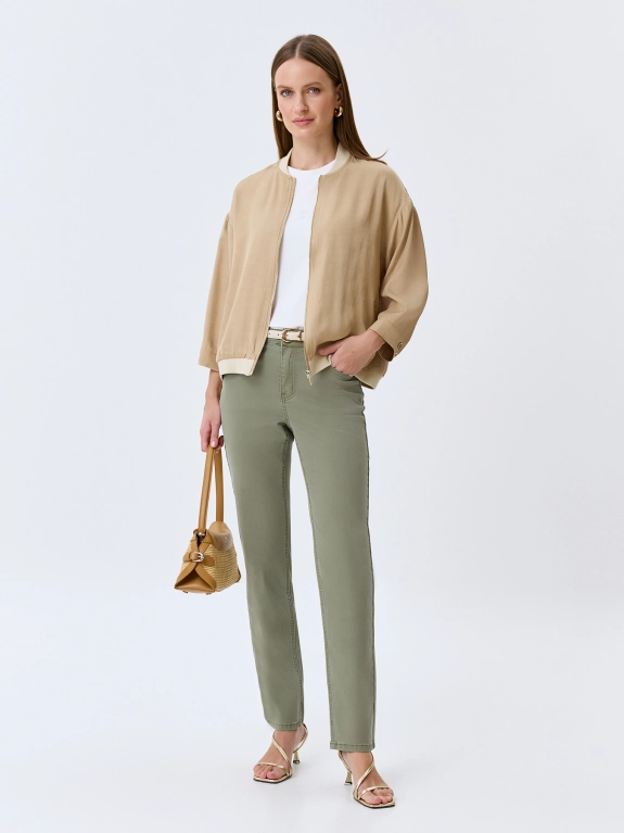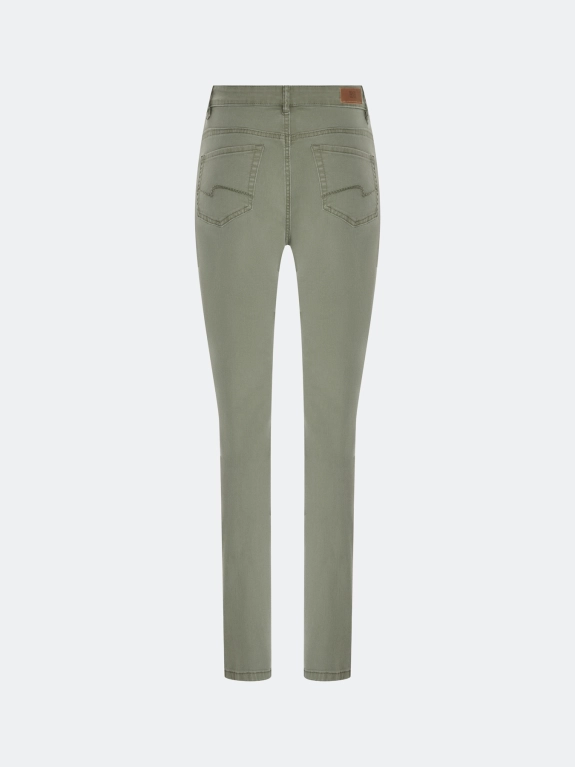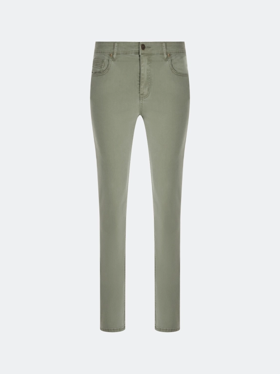 Оливковые джинсы Slim fit средней посадки. Застежка на молнию и металлическую пуговицу. Пять карманов. В составе спандекс.