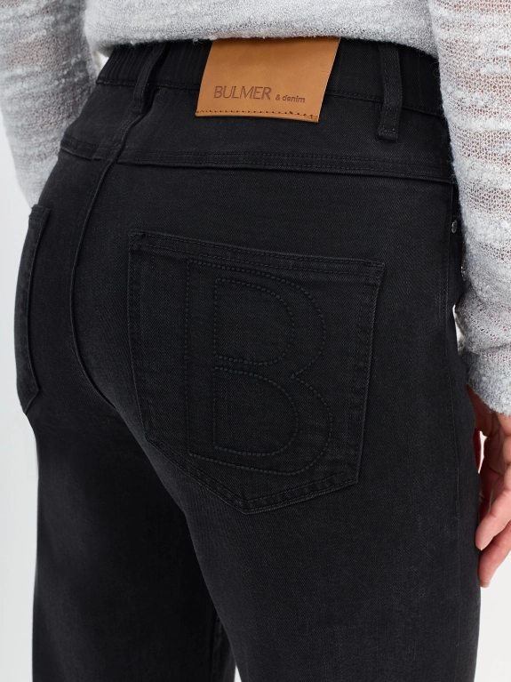 Прямые мягкие черные джинсы. Застежка на молнию и металлическую пуговицу. Пять карманов. Вышивка в цвет на заднем кармане. В составе эластан.