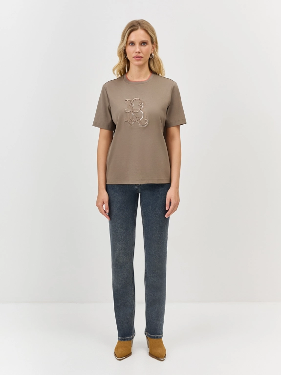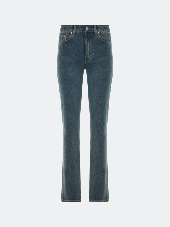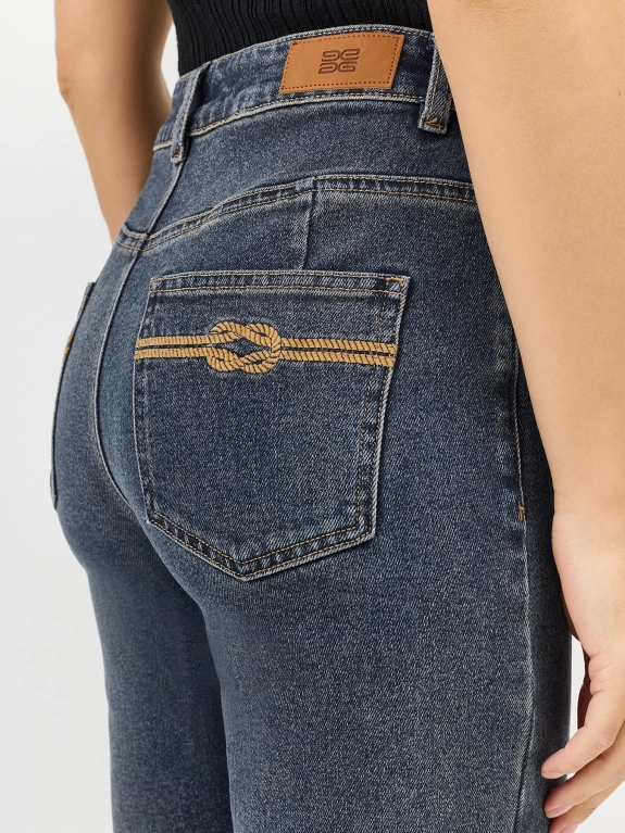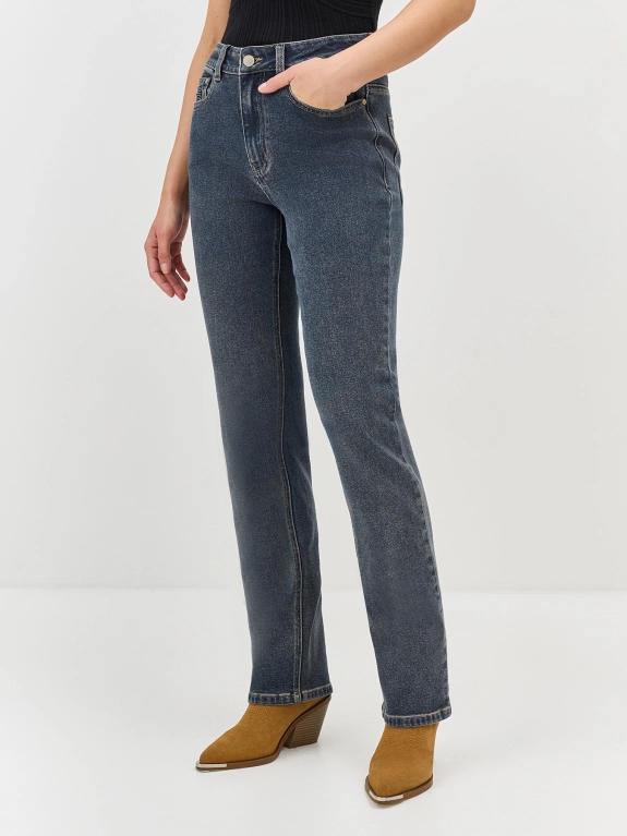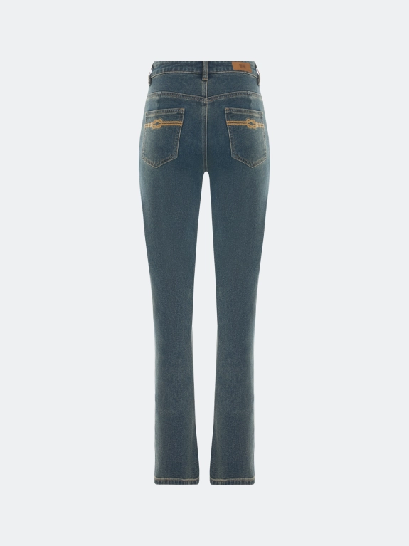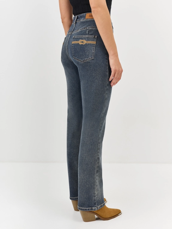 Прямые джинсы с крученой вышивкой на задних карманах. Застежка на молнию и металлическую пуговицу. Пять карманов. В составе спандекс.