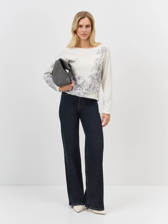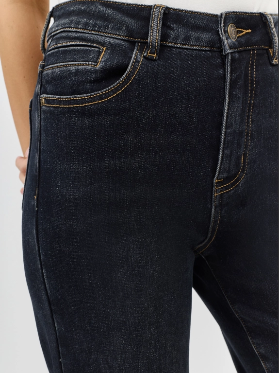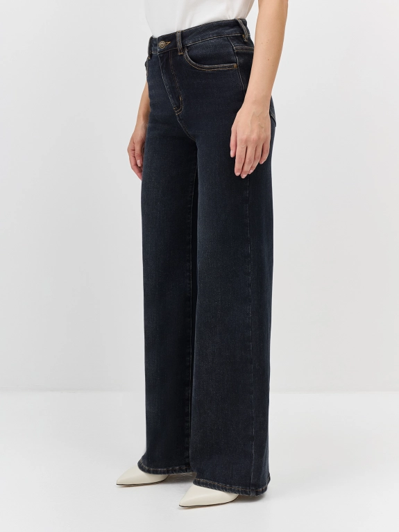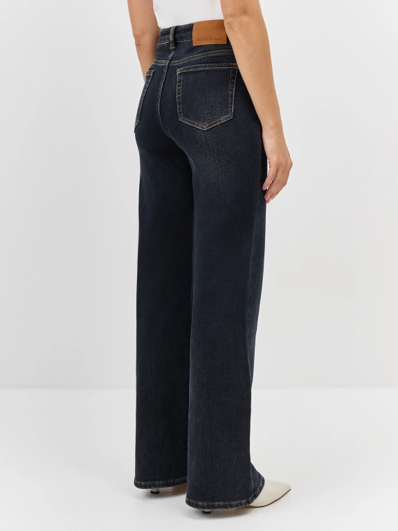 Утепленные широкие джинсы прямого силуэта. Застежка на молнию и металлическую пуговицу. Пять карманов. В составе спандекс.