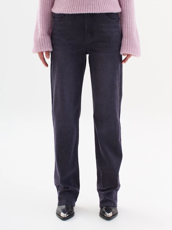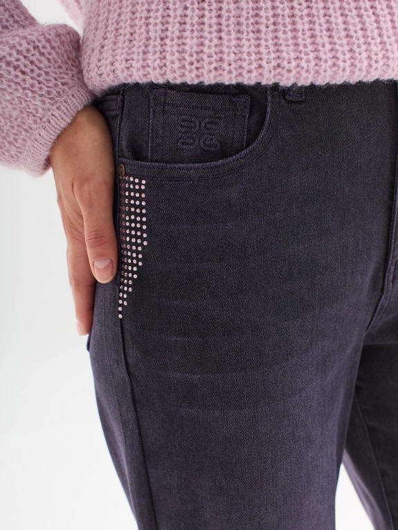 Яркие джинсы со стразами и тенселем в составе