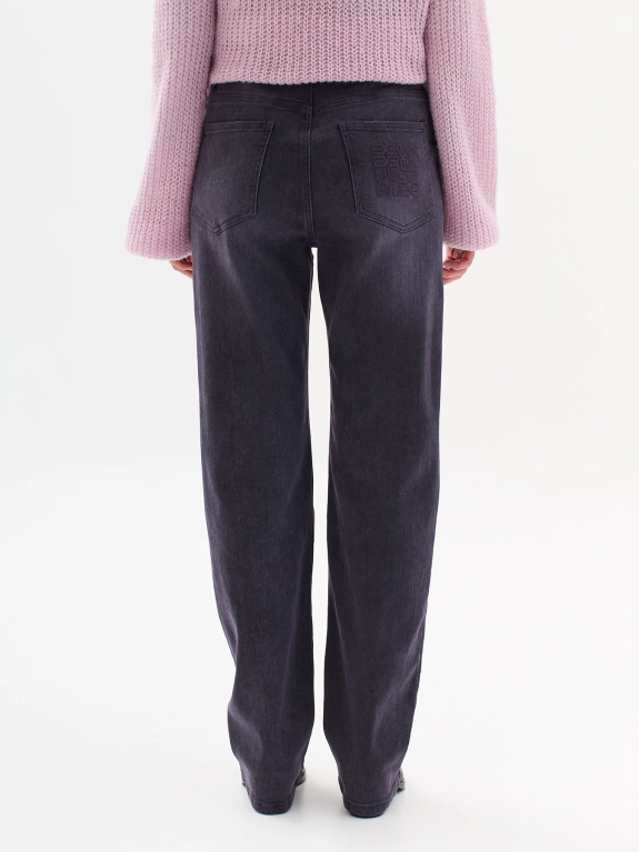 Яркие джинсы со стразами и тенселем в составе. Пять карманов. Застежка на молнию и металллическую пуговицу. Прямой силуэт.