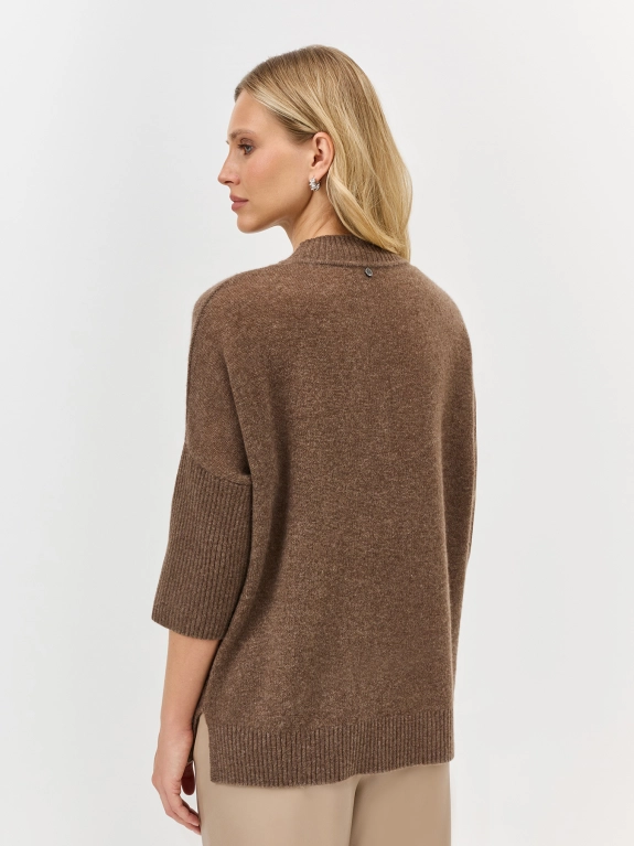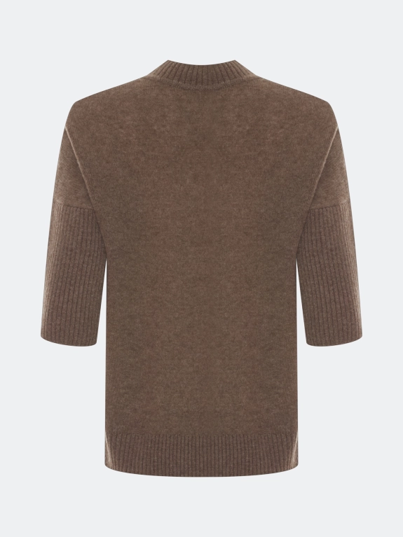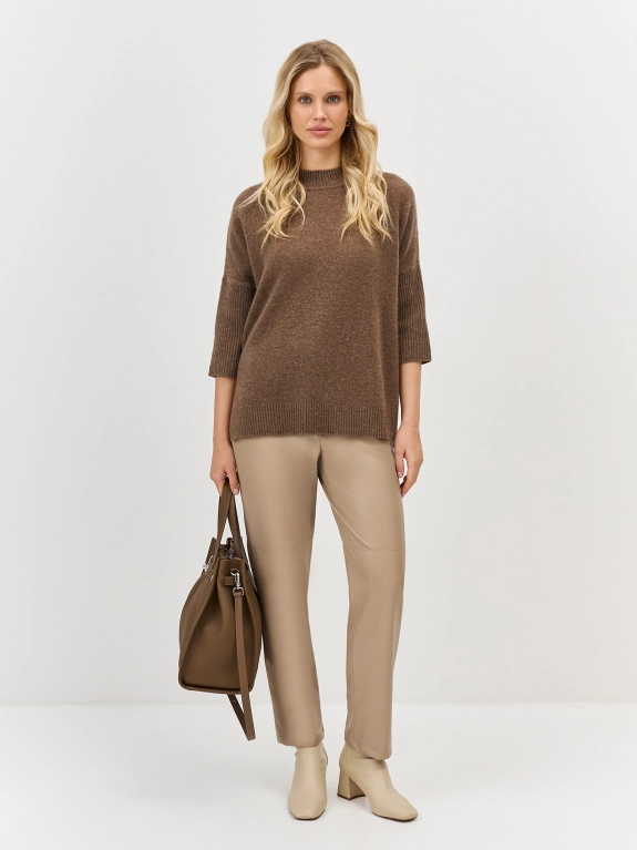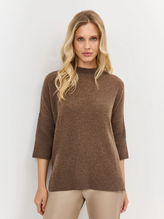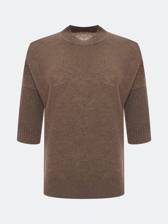 Базовый джемпер из 100% кашемира. Свободный силуэт. Воротник небольшая стойка. Спущенная линия плеч. Укороченные широкие рукава 3/4 с широкими манжетами. Деликатные разрезы в боковых швах. Риб по горловине и низу изделия.