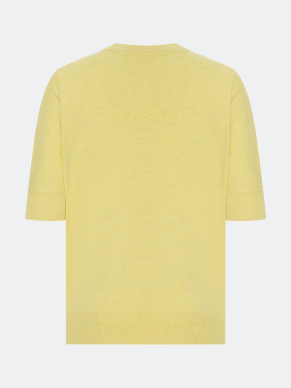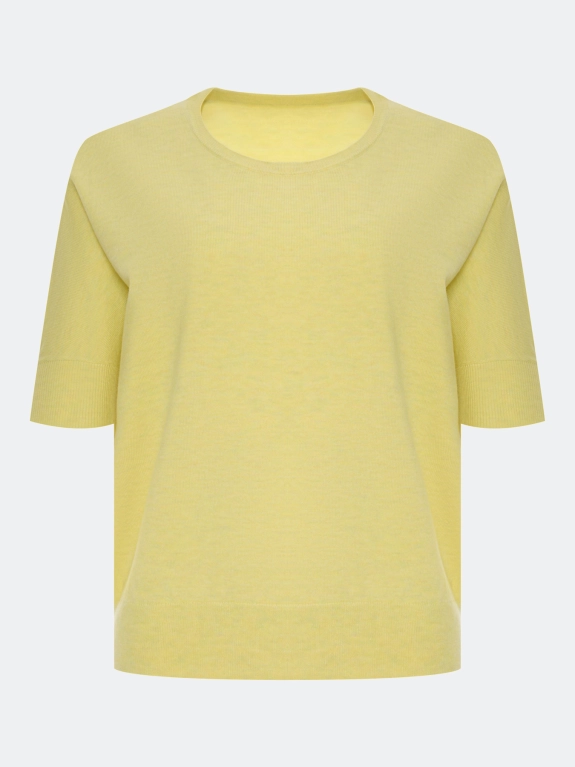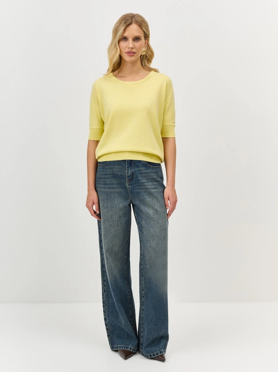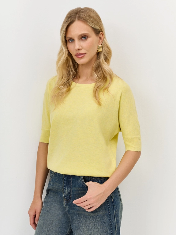 Яркий джемпер из смесовой вискозы с шерстью в составе. Свободный силуэт. Круглый вырез. Короткий цельнокроенный рукав. Риб по низу рукавов и изделия.