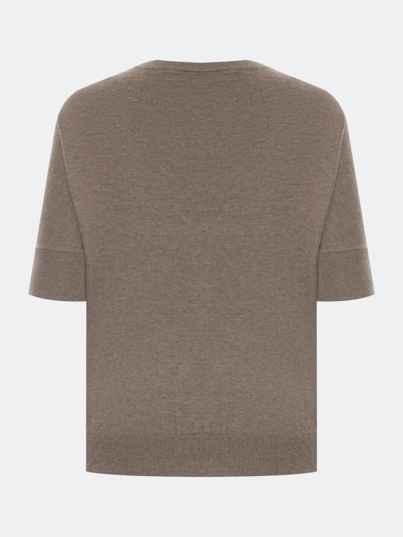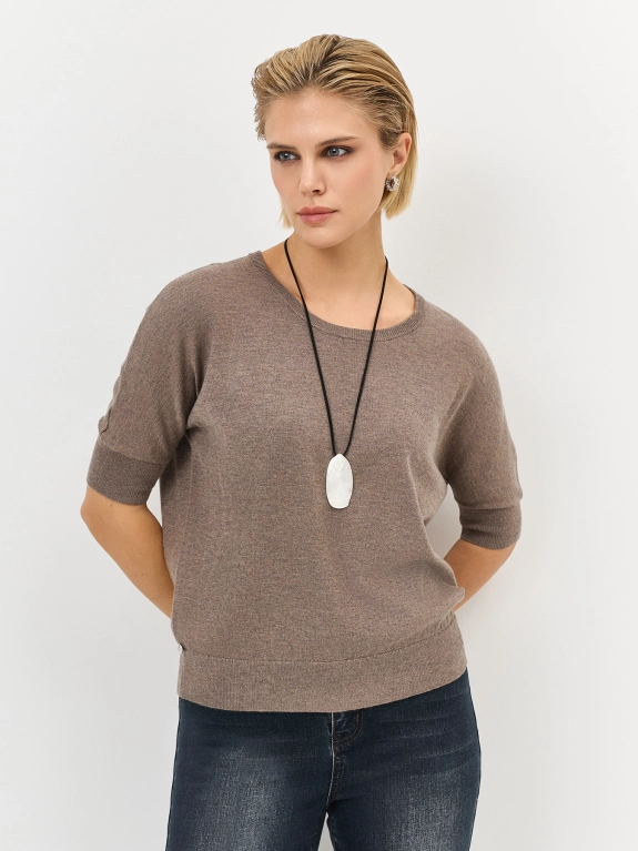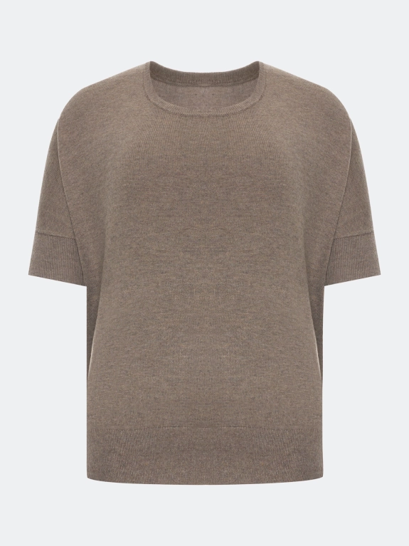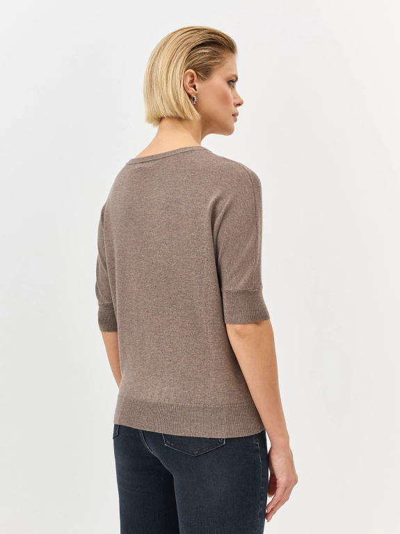 Базовый джемпер из смесовой вискозы с шерстью в составе. Свободный силуэт. Круглый вырез. Короткий цельнокроенный рукав. Риб по низу рукавов и изделия.
