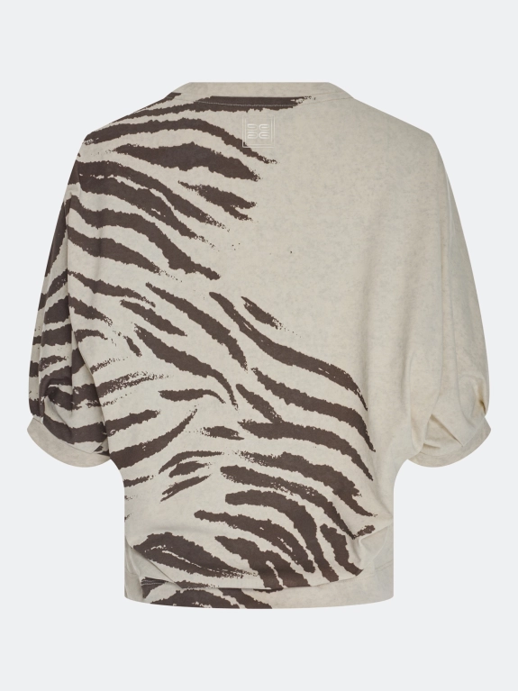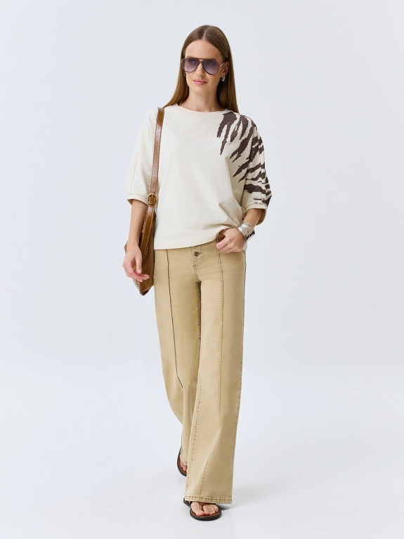 Хлопковый джемпер с асимметричным анималистичным принтом. Свободный силуэт. Круглый вырез. Укороченные цельнокроенные рукава с узкими манжетами по низу.