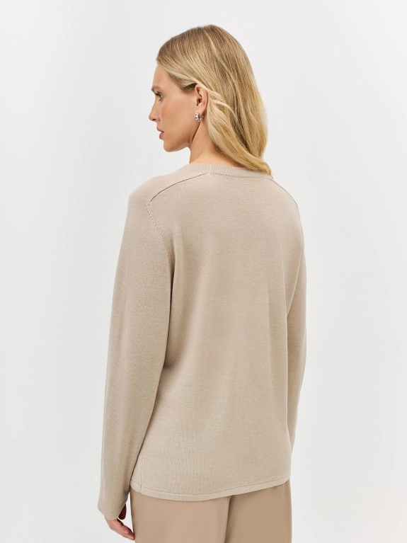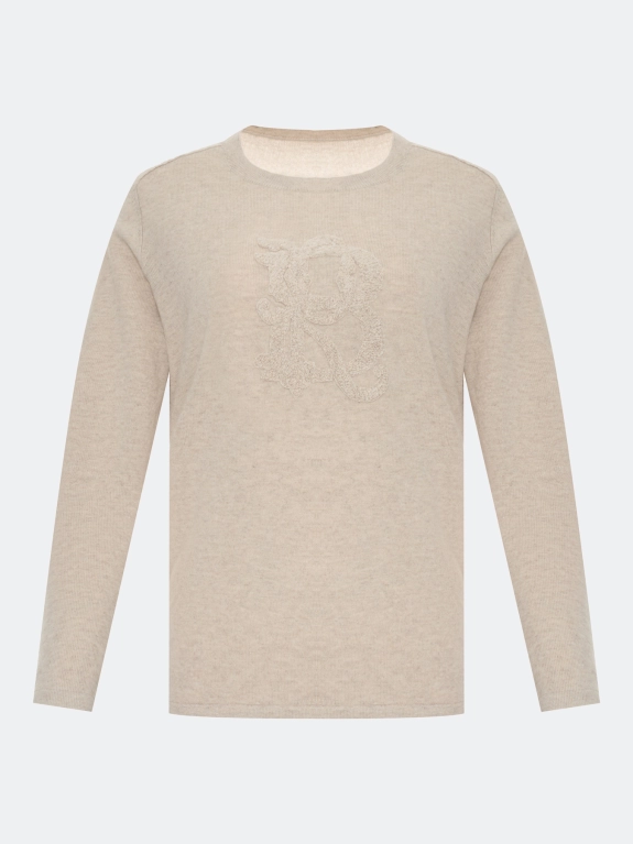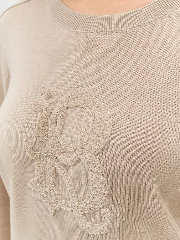 Вязаный джемпер с объёмной вышивкой- монограммой. Прямой силуэт. Круглый вырез. Линия плеч немного спущена. В составе вискоза и ангора.